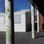 Dolores, notre couturière du village a laissé ses aiguilles pour prendre ses pinceaux et mettre une touche florale aux poteaux du préau! Une belle initiative!