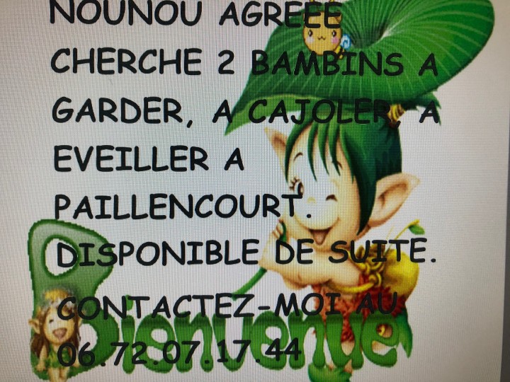 NOUNOU DISPONIBLE POUR DEUX ENFANTS SUR PAILLENCOURT.